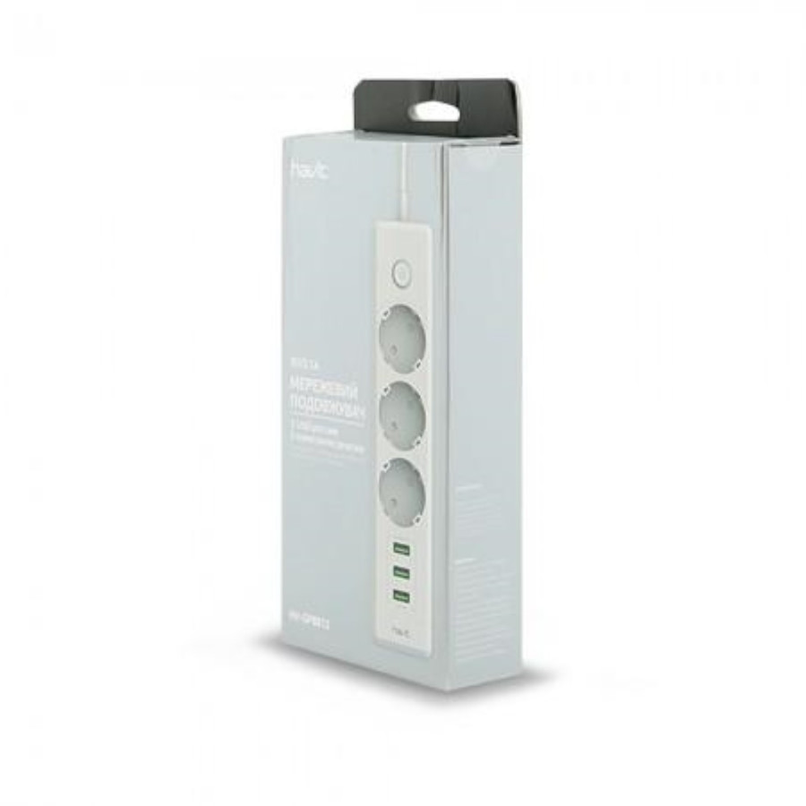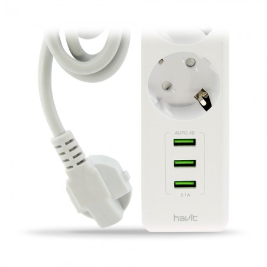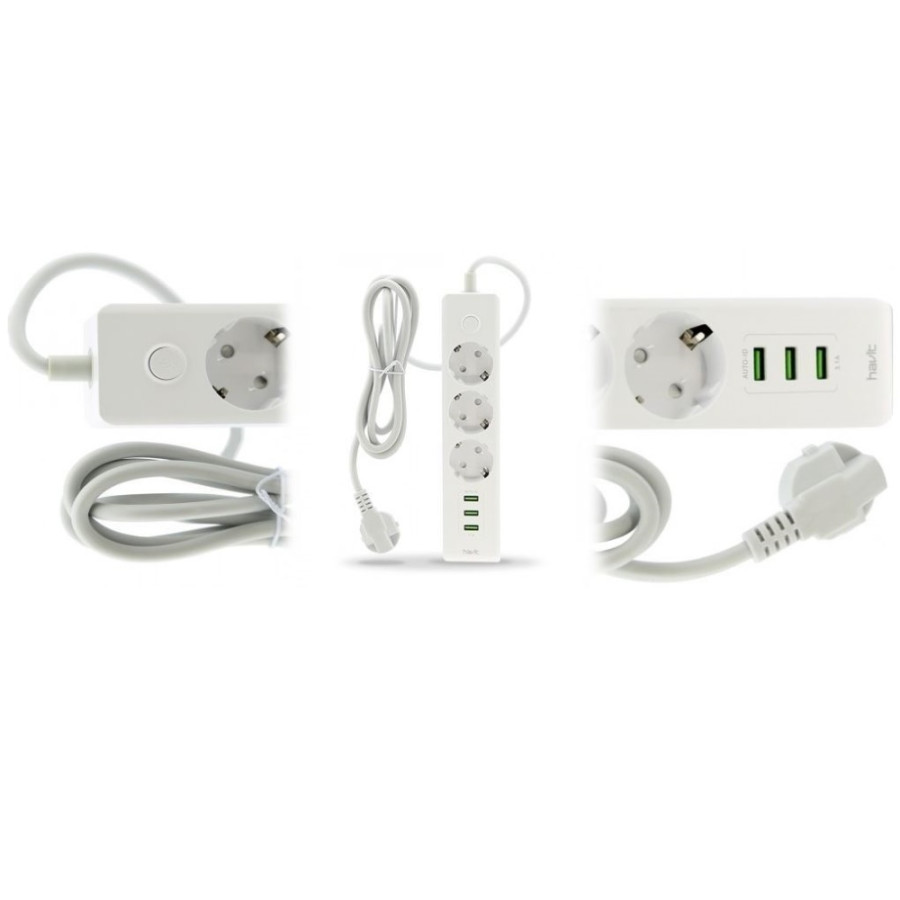 Πολύπριζο HAVIT - HV-SP8813, 3 θέσεων + 3 θύρες USB